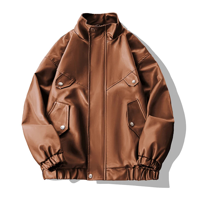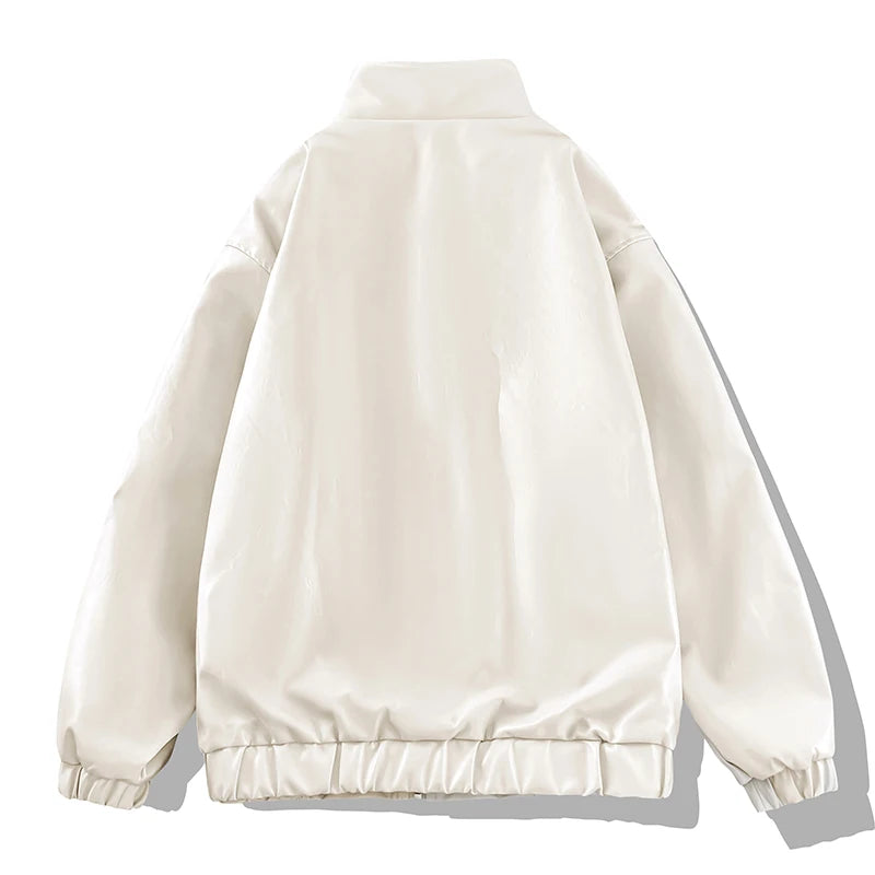 Crafted from smooth, supple leather – this jacket balances clean lines with a soft matte finish. Oversized fit, concealed front zipper, and high stand collar reflect modern comfort.